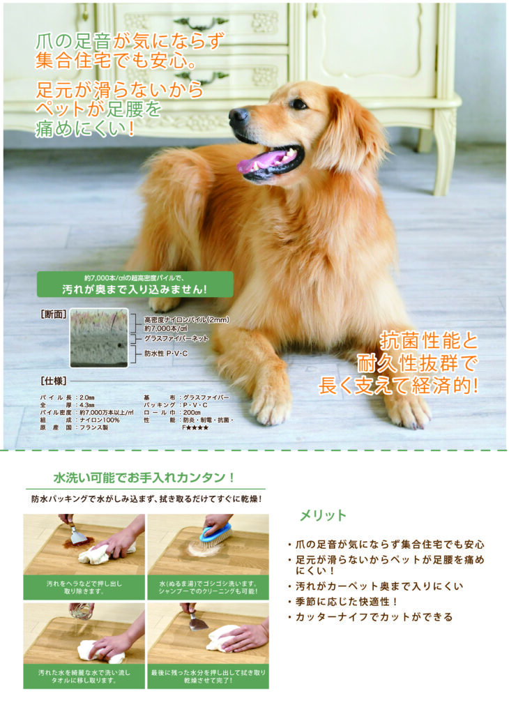 ツルツル滑るフローリングで転倒しケガをしてしまう前に≪ペット用カーペット≫で予防しましょう!!