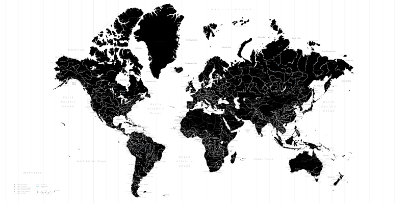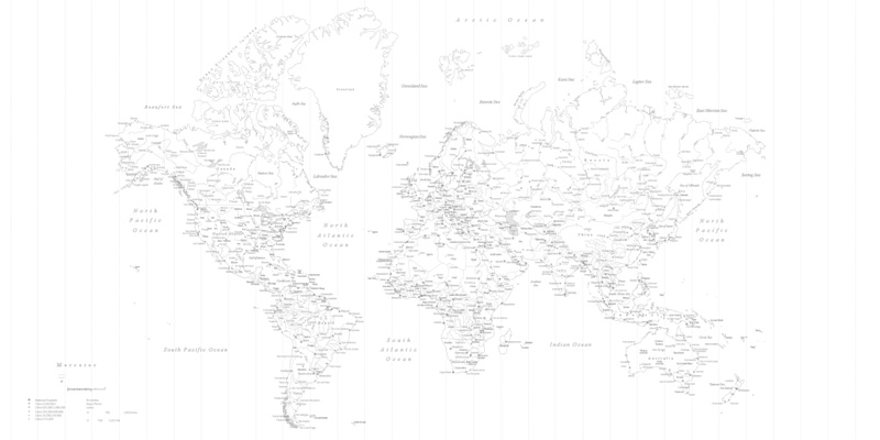 世界地図を描いたグラフィックのガラスフィルムデザイン。
