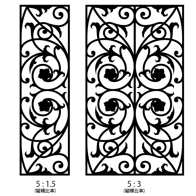 ※縦横比率は多少変更可能ですが大きくは変えられない為、ご希望のガラスサイズに展開可能かご確認ください