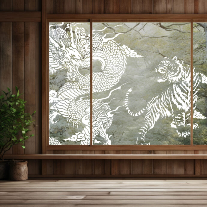 今年の干支である龍(辰)と虎が睨み合うデザイン。