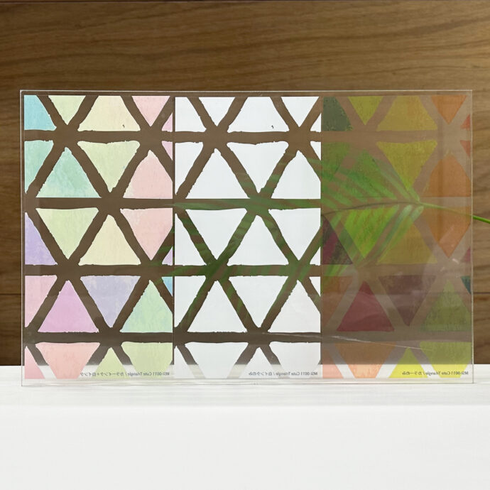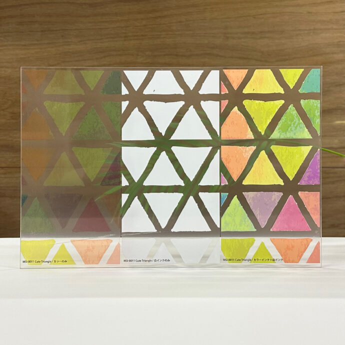 施工した反対側の面↴ MSI-0011 Cute Triangle 左から カラーインク+白インク ・ 白インクのみ ・ カラーインクのみ