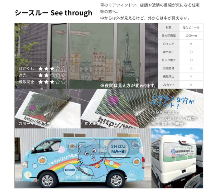 車内から外の視線を遮りながら、会社の宣伝や、お好みのデザインを楽しむことが出来ます♪