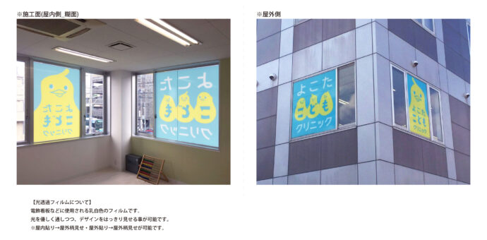 店舗ガラスの看板使いに最適な塩ビフィルムです。