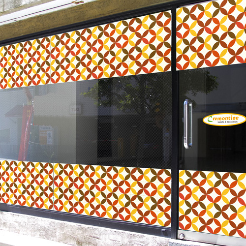 七宝のパターンをカラフルに展開したガラスフィルム、ステッカーデザイン。