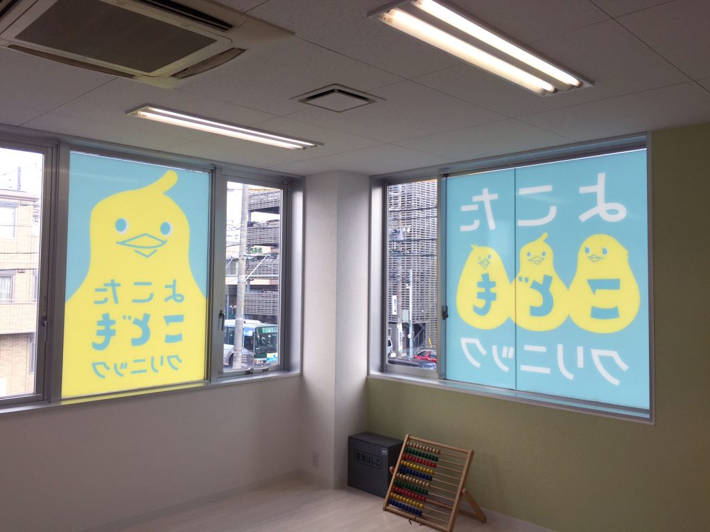 いただいたデザインデータをベースに窓ガラスへ「光透過タイプ」のフィルムを使用して